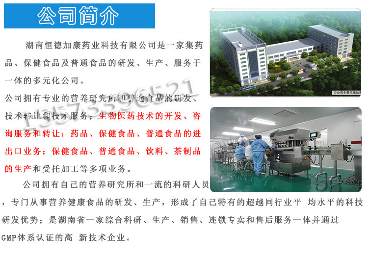 湖南恒德加康承接片剂、粉剂、颗粒剂和凝胶糖果等食品代加工业务,价格公道,保证质量。每一款进口原料公司都会要求供应商必须提供GMP、QS等方面的认证,生产流程经过国家商检,产品出厂全部进行合格审查。